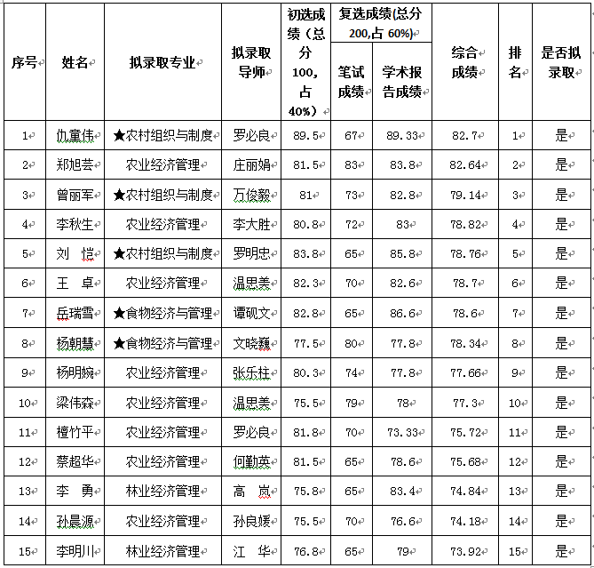 根据《华南农业大学2016年全日制博士研究生招生简章》和《必赢76net线路官网2016年博士研究生招生细则》的要求,必赢76net线路官网招生考核小组对考生进行复选,按照总成绩由高到底确定拟录取名单,现予以公示。公示时间从2015年12月30日至2016年1月6日。公示期内若有异议,请电话或书面向必赢76net线路官网研究生管理办公室反映。反映情况时要自报或签署真实姓名,要有具体事实;不报或不签署真实姓名的,以及不提供具体事实材料的,一律不予受理。