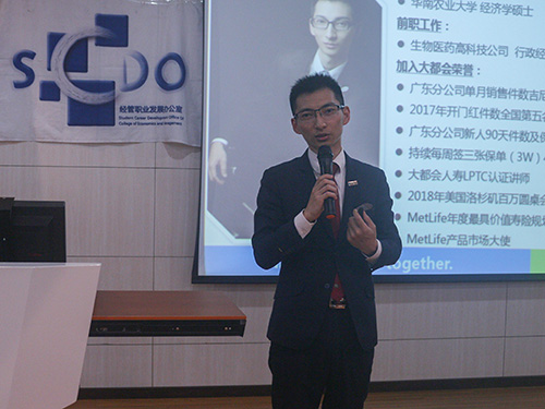 为加强校友与母校之间联系,2017年11月10日晚上,经管学院第10期校友讲座在401报告厅举行,MetLife首席寿险规划师,我院2003级金融学专业沈烁师兄应邀为众多师弟师妹们分享职场经验干货。
