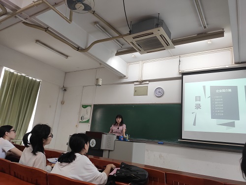 宣讲会开始前组织学生观看企业宣传片,同学们认真观看。此后会议主题分为两大部分,分别是企业简介和管培招募介绍。企业方首先对本公司的发展前景,发展历程,地理位置以及公司职员培训会等做了全面介绍。