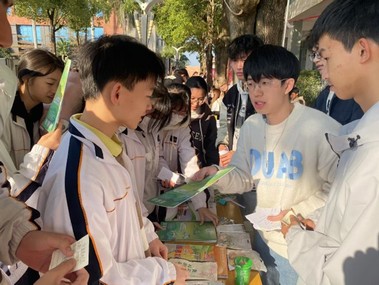 宣传大使和志愿者在普华宁美实验学校通过宣讲、摆摊、派发文创礼品的形式为学子们讲解关于华南农业大学招生政策、专业设置、校园生活、就业前景等方面的问题。这次活动为同学们提供了宝贵的信息,为他们的高考之路注入了信心与动力。
