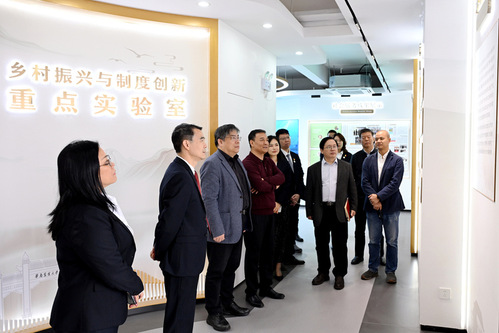 调研中,薛红卫实地参观考察了省哲学社会科学重点实验室展示厅、明德书苑一站式学生社区、致知长廊、二级心理辅导站、商业社会全景创新实验室、现代农业经营管理智慧实验室等平台的建设情况。